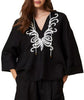 - Linen blend embroidered blouse