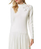 Wool blend turtleneck jumper with romantic lace detail and a soft textured knit. Designed with a gathered high neck, long sleeves, ribbed cuffs and hem, and inlaid lace on one shoulder with subtle embroidery — a versatile staple to elevate your cool-weather wardrobe.