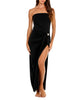 Melina Dress is a sleek strapless silhouette that redefines minimal elegance. Designed with a flattering pull-on fit, it features a bold front slit and a sculptural marble-like ring that gathers the fabric for a soft drape effect.